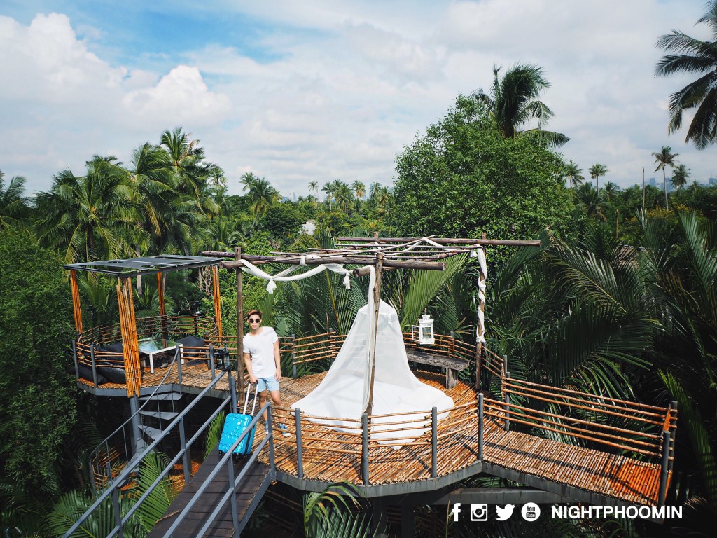 วินมอเตอร์ไซค์พาเราลัดเลาะตามถนนเล็กๆที่เข้าไปสู่หมู่บ้านที่ปลูกอยู่บนเสาสูงจากดินชายแลน เพื่อไปส่งยังที่พักของผม “Bangkok Tree House” โรงแรมที่สร้างในคอนเสปการอนุรักษ์ธรรมชาติ สำหรับผู้คนที่เดินทางเข้ามา ไม่ว่าจะเข้าพักหรือแค่แวะมากินอาหาร จะได้สัมผัสกับสถานที่เป็นมิตรกับสิ่งแวดล้อม และยังได้ภาพถ่ายสวยๆไปโพสให้เพื่อนอิจฉาอีกด้วย