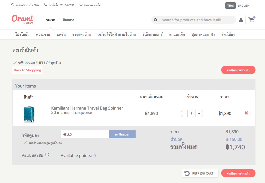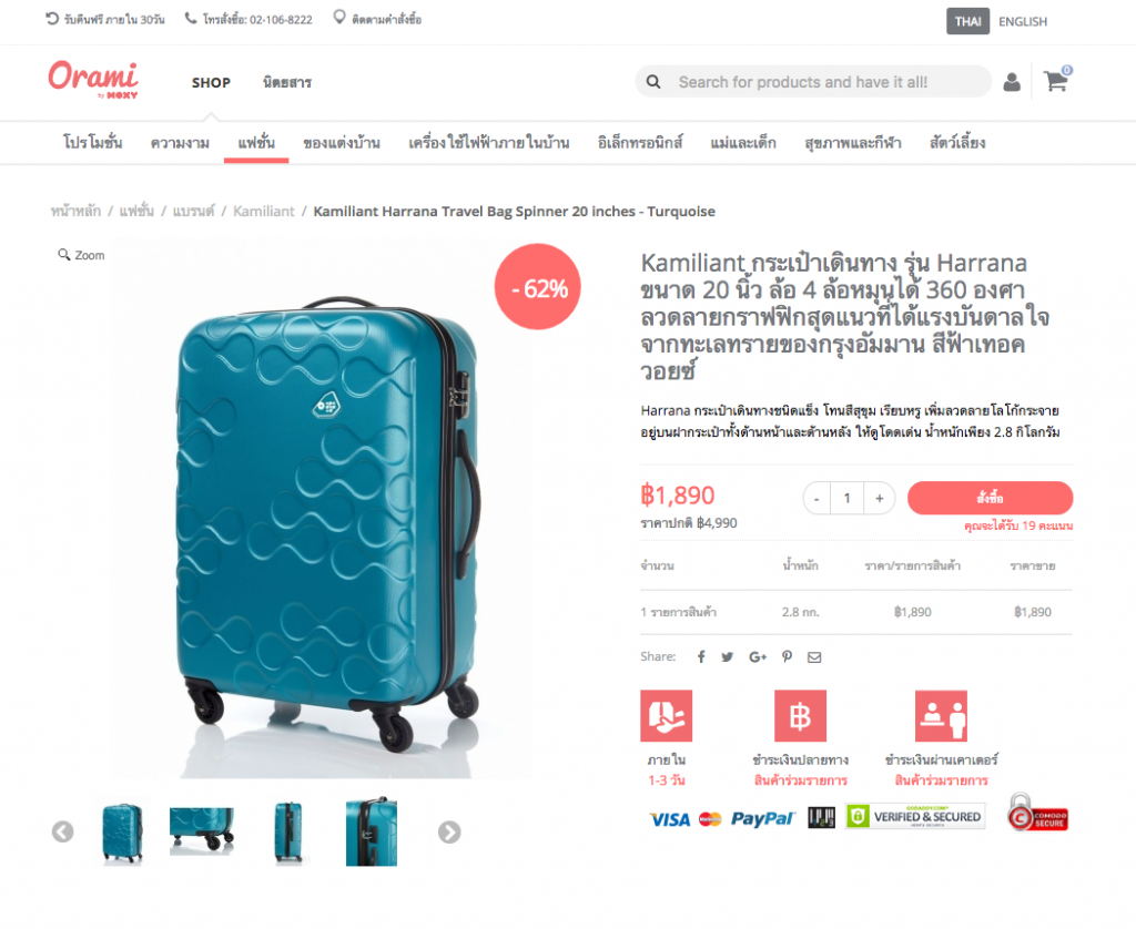 สำหรับใครที่อ่านรีวิวนี้ แล้วชื่นชอบกระเป๋าเดินทางสีสันสวยงาม ออกแบบคุณภาพได้มาตรฐาน ยี่ห้อ Kamiliant ผมซื้อที่ www.orami.co.th สำหรับสมาชิกใหม่ได้โค๊ด “Hello” ลดเพิ่มอีก 150 บาท(จากที่ลดอยู่แล้ว) มีหลายขนาดหลายแบบ ลองไปเลือกซื้อดู ชี้เป้าของดีราคาถูกให้แล้ว จัดไปครับ