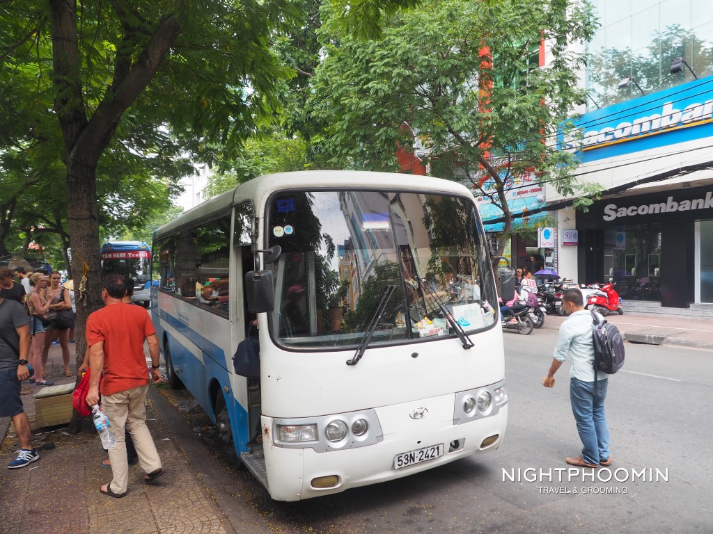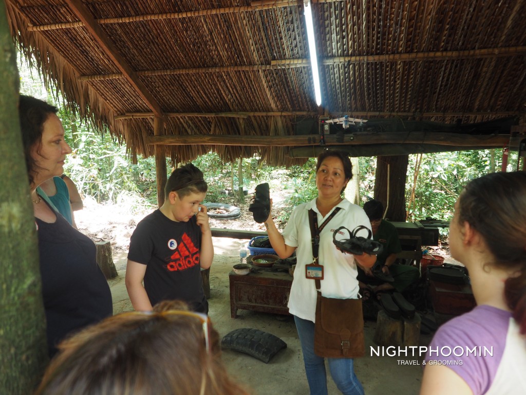พอถึงวันที่เราซื้อทัวร์ นักท่องเที่ยวมาเจอกันที่บริษัททัวร์ตามเวลานัดหมาย 7.30น. รถจะออกราวๆ 8.00น. แน่นอนว่า คุณจะเจอชาวตะวันตกหลายคนร่วมเดินทางไปกับคุณด้วย ใช้เวลาราวๆ 2 ชั่วโมง เนื่องจากระหว่างทางรถบัสจะแวะที่ศูนย์จำหน่ายสินค้าหัตถกรรม โดยนำรายได้ไปช่วยเหลือผู้บาดเจ็บและพิการที่ได้รับผลกระทบจากสงคราม ถ้าใครสนใจก็ซื้อของเล็กๆน้อยๆช่วยเหลือชาวเวียดนามได้นะครับ … และที่นี้คุณยังสามารถเข้าห้องน้ำหรือซื้อเครื่องดื่มเล็กๆน้อยๆได้ด้วยครับ