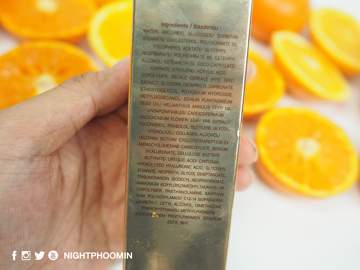 Packaging: cute press ปรับปรุงแพ็คเกจใหม่ กล่องสีทอง บรรจุขวดปั้มสูญญากาศ ปั้มเนื้อครีมออกมาง่าย คงคุณภาพผลิตภัณฑ์ได้อย่างดี เพราะไม่สัมผัสกับอากาศ ส่วนตัวอักษรยิงติดกับไปขวดพลาสติก