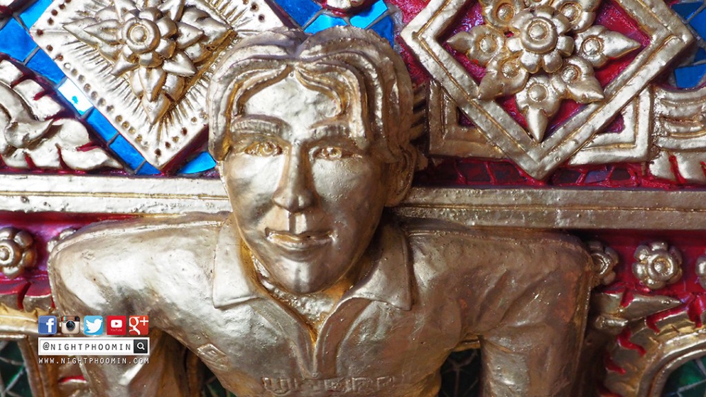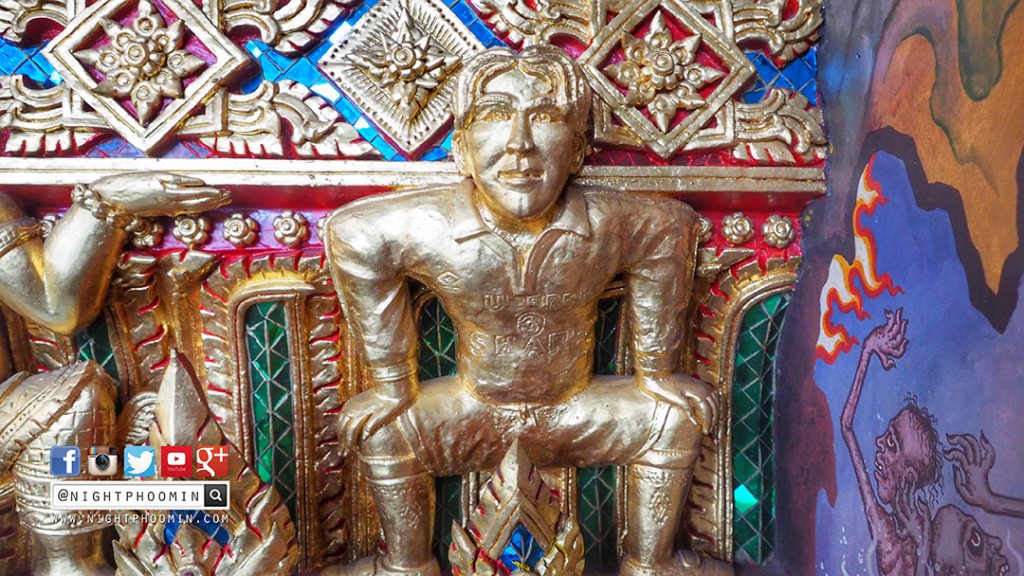 สำหรับคำตอบของที่มา David Beckham Temple อยู่ถัดไปจากบริเวณวิหารสร้างใหม่ คือศาลาการเปรียญ ที่สร้างตั้งแต่ปี 2540 โดยออกแบบงานศิลปะโดย อ.ทองร่วง เอมโอษฐ์ (ศิลปินแห่งชาติสาขาทัศนศิลป์ ประณีตศิลป์ ศิลปะปูนปั้น ประจำปี 2554) ที่ได้สร้างสรรค์ผลงานได้อย่างอิสระเต็มที่