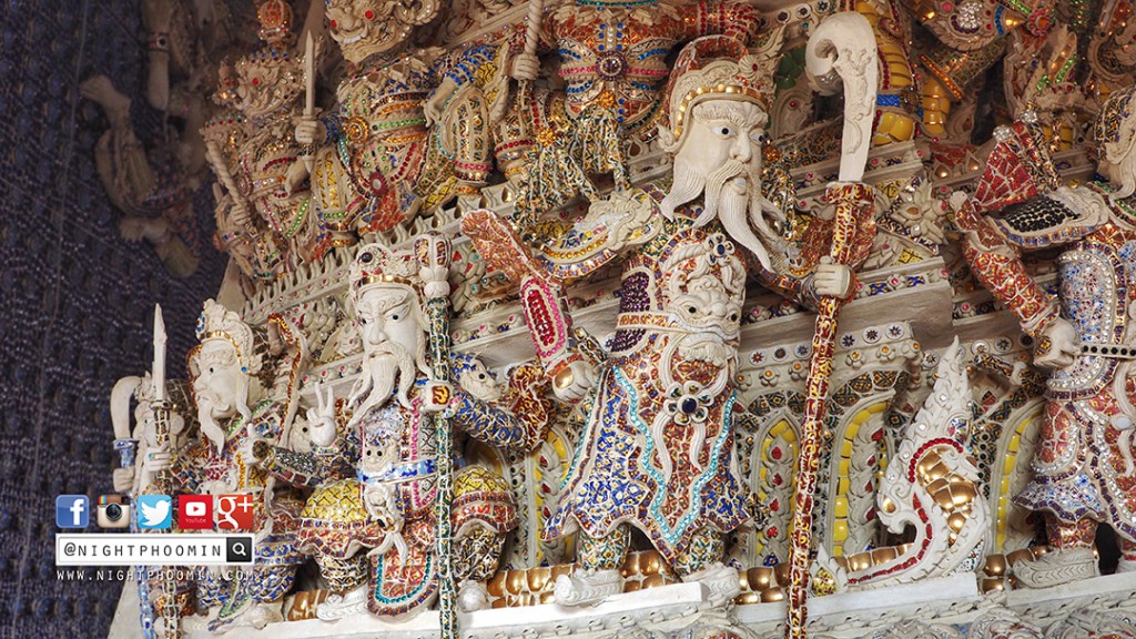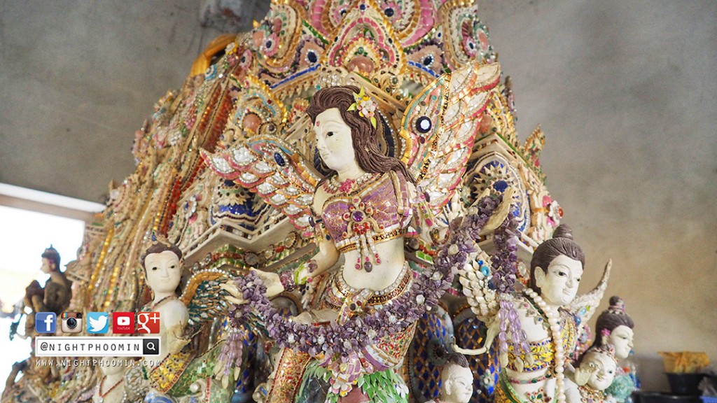 บริเวณวิหารคดเราจะเห็นชิ้นงานปูนปั้นที่นำมาประกอบกันตากชิ้นเล็กชิ้นน้อย จนกลายเป็นชิ้นงานที่สวยงาม น่าทึ่งมากๆครับ