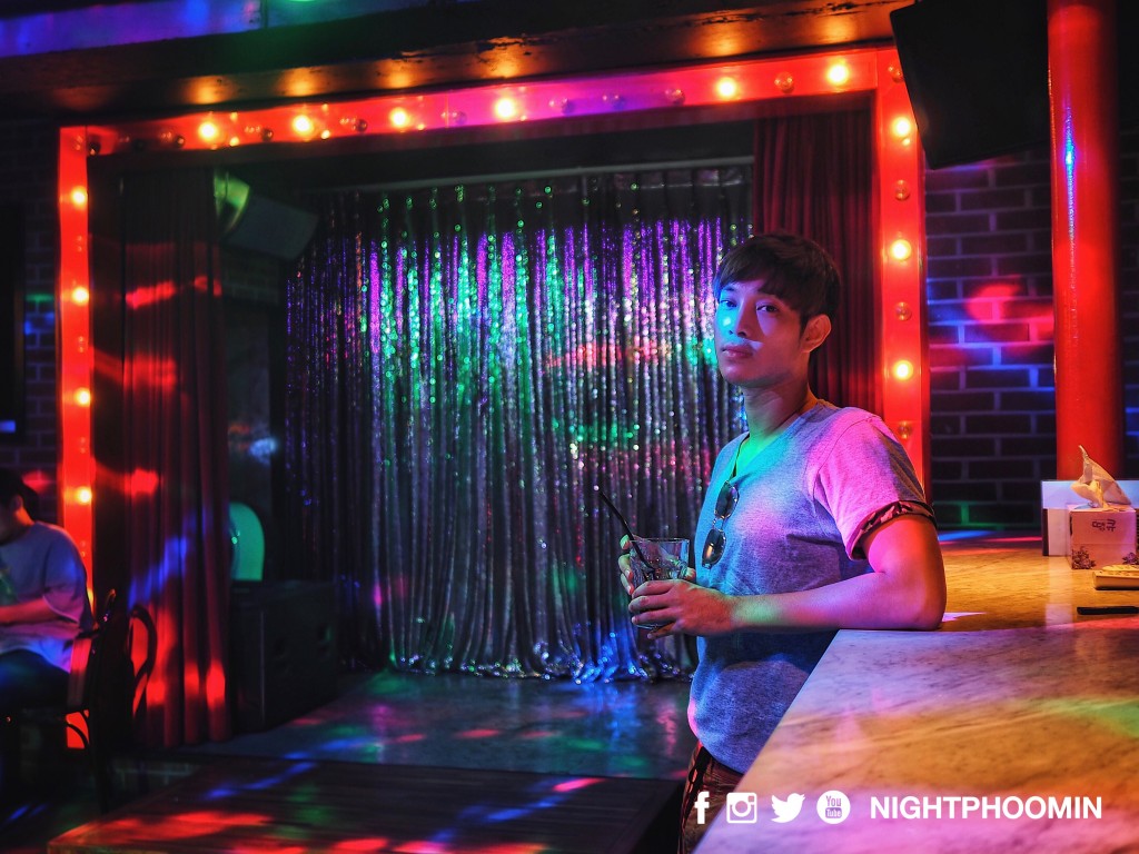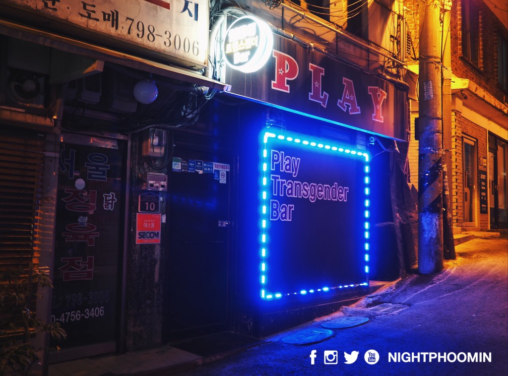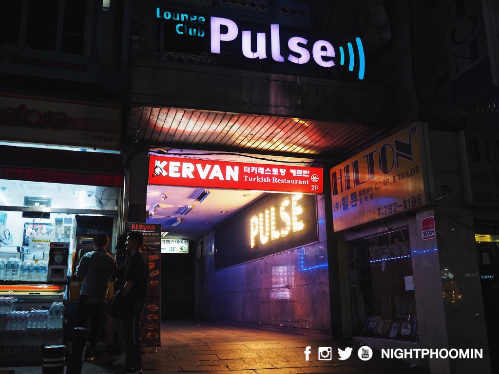 ไนท์ถ่ายป้ายหน้าทางเข้าผับ Pulse คลับเกย์ที่ฮิตแห่งหนึ่งในย่านอิแทวอน (ปัจจุบันเปลี่ยนชื่อเป็น Him Club by Pulse)
