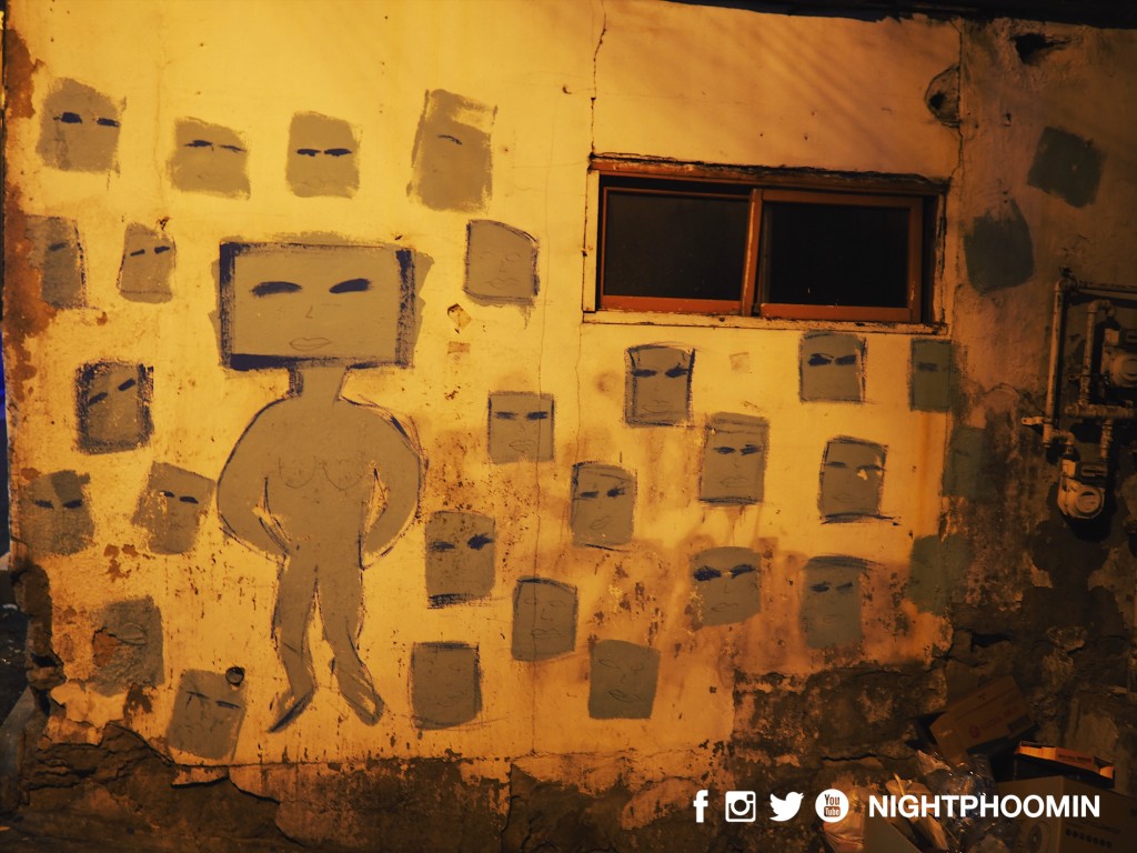 กราฟิตี้ที่ถูกวาดในย่านนี้ แสดงออกว่าสาวประเภทสองเกาหลี หน้าตาคล้ายกันทุกคน (เราว่าผู้หญิงก็ด้วยนะ)