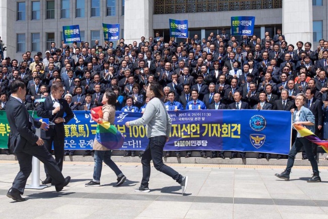 นี้แค่ตัวอย่างจากคนๆเดียว แต่ในสังคมเกาหลีใต้ปัญหา “เกย์” ถือว่าเป็นเรื่องไม่ง่ายเลยจริงๆ ถึงแม้ว่าประเทศนี้มีอินเตอร์เนทที่ไวที่สุดในโลก มีวงการบันเทิง KPOP ที่แข็งแรงระดับโลก แต่วัฒนธรรมอนุรักษ์นิยมหรือคนหัวโบราณยังคงมีอยู่ในประเทศนี้ มีผลวิจัยออกมาว่า ประชาชนราว 70% ยังไม่ยอมรับชาวรักร่วมเพศ ส่วนใหญ่เป็นวัยผู้ใหญ่ทั้งสิ้น และข่าวที่ยิ่งตอกย้ำปัญหานี้คือ เมื่อต้นปี 2017 ประธานาธิบดีเกาหลีใต้ ‘มุนแจอิน’ สั่งกองทัพเกาหลีไล่ล่าทหารที่เป็นเกย์ โดยมีโปรเจคว่า “Gay Witch-Hunt” โดยใช้แอพลิเคชั่นเกย์ในการล่อลวงทหารด้วยกันให้เปิดตัว แล้วสั่งขึ้นบัญชีดำกองทัพ โดยจับได้มากกว่า 50 นาย รวมถึงการยึดโทรศัพท์ไปตรวจสอบ ซึ่งสาเหตุมาจากมีคลิปหลุดทหารเกย์มีเพศสัมพันธ์กันออกมาทางโซเซียลมีเดียนั้นเอง … ซึ่งกฎที่เข้มงวดนี้ ทำให้กลุ่มชาวรักร่วมเพศในเกาหลีออกมาเคลื่อนไหว แต่ก็ไม่มีผลมากนักก็ตาม นอกจากนี้องค์กรศาสนาคริสต์มีอิทธิพลต่อสังคมหรือแม้แต่ทางการเมือง มีอำนาจขัดขวางไม่ให้นักการเมืองรับรองสิทธิความหลากหลายทางเพศเข้ามาทำหน้าที่ในสภาได้อีกด้วย และเรื่องเหล่านี้เป็นประเด็นสำคัญที่ชาวรักร่วมเพศในเกาหลีพูดถึงกัน ว่าสุดท้ายแล้ว “เกาหลีใต้ยังไม่มีเสรีภาพมากพอสำหรับพวกเขา”