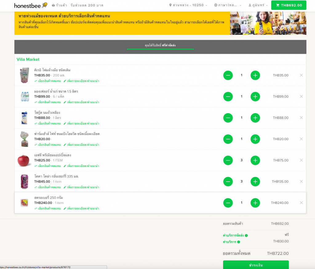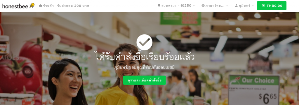 เข้าเวบไซค์ Honestbee.co.th ลงทะเบียน ยืนยันตัวคุณนิดหน่อย เพื่อตรวจสอบว่า คุณอยู่ในพื้นที่ที่ให้บริการหรือไม่ … ผมอยู่เขตสวนหลวง จัดไป!!!