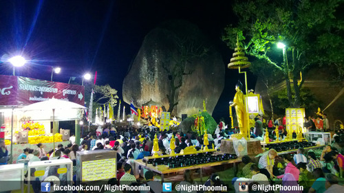 เพียงแค่อึดใจเดียวคุณจะเดินทางมาถึงลานกว้างบริเวณประดิษฐานพระเจ้าตากสินมหาราช คุณจะเห็นผู้คนนั่งพักเหนื่อย บางคนก็นั่งกินมาม่า-โจ๊ก ผมรับรองว่า ร้อยละ 80 ที่ขึ้นมาถึงที่นี้ได้กลิ่นมาม่าแล้วต้องน้ำลายไหลทุกคน … ส่วนใครที่ไม่กินบะหมี่กึ่งสำเร็จรูป-โจ๊กสำเร็จรูป คุณอาจจะเตรียมอาหารจำพวกข้าวเหนียวหมูทอด-ไก่ทอด รวมถึงน้ำดื่มติดตัวมาด้วยก็ได้ครับ เพราะคุณต้องใช้เวลาอยู่ในบริเวณนี้รวมขึ้นลงประมาณ 4-6 ชั่วโมงครับ