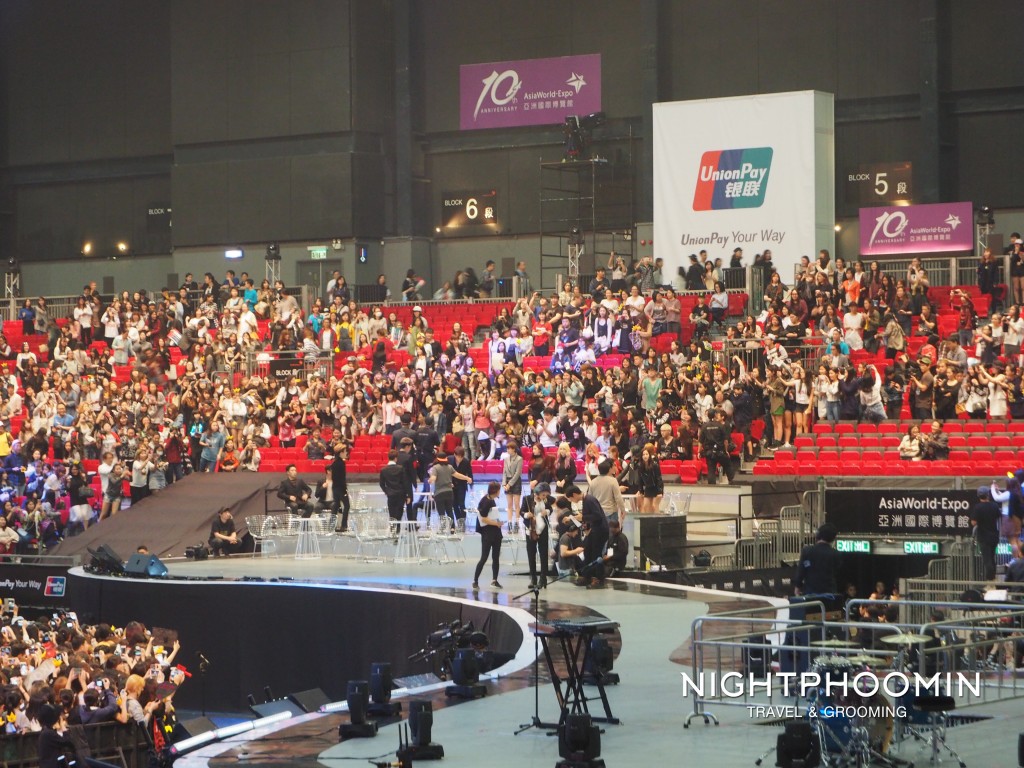 เรามาถึงงานพร้อมๆกับสาวกเคป๊อปอีกหลายคน ส่วนในงานเรียกว่าคนเยอะมากๆ มีบูธขายของ Show case ที่เรียกว่าหมดในเวลาไม่นาน และบูธสปอนเซอร์ของงาน … พอเวลา 6 โมงเย็น หลังจากศิลปินเดินพรมแดงกันหมดแล้ว ประตูก็เปิดให้ผู้เข้าชมเข้าไปในงานครับ สำหรับบัตรที่ไนท์ได้มา เป็นโซนฝั่งซ้ายของเวที Block 16 สีฟ้า เรียกได้ว่าใกล้เวทีแบบสุดๆ ฟินมาก!