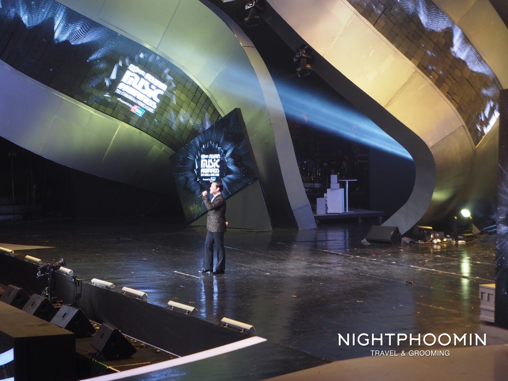ฝั่งตรงข้าม มองเห็นที่นั่งของศิลปินชัดเจน ตรงนี้แปละที่เขาเตรียมตัวมารับรางวัล