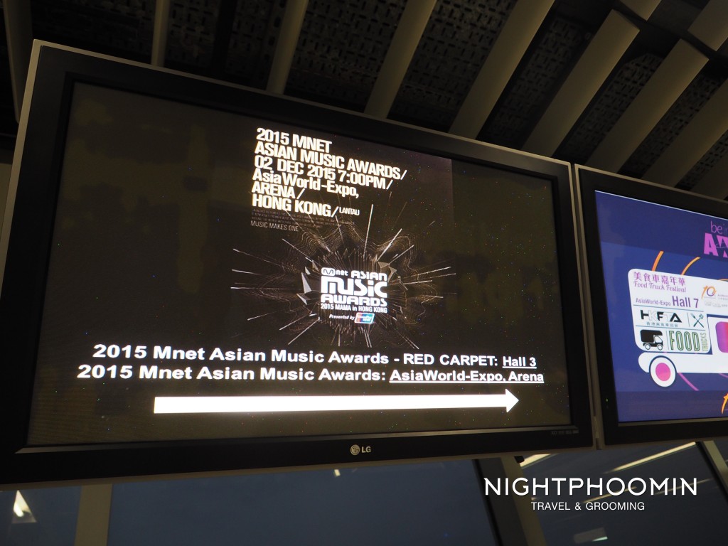 หลังจากอาบน้ำเแต่งตัวพร้อมลุย MAMA2015 แล้ว เดินทางด้วยรถไฟใต้ดินจาก Tsim Sha Tsui ลงสถานี Central เพื่อไปต่อสายรถไฟ Airport Express เดินทางราวๆ 1 ชม. เราก็เดินทางมาถึงที่ Asia World Expo สถานที่จัดงานแล้วครับ แนะนำว่า ควรซื้อบัตร Octopus (คล้ายๆบัตร Rabbit ของเมืองไทย) เอาไว้ขึ้นรถไฟ-รสเมล์ สะดวกมากๆครับ