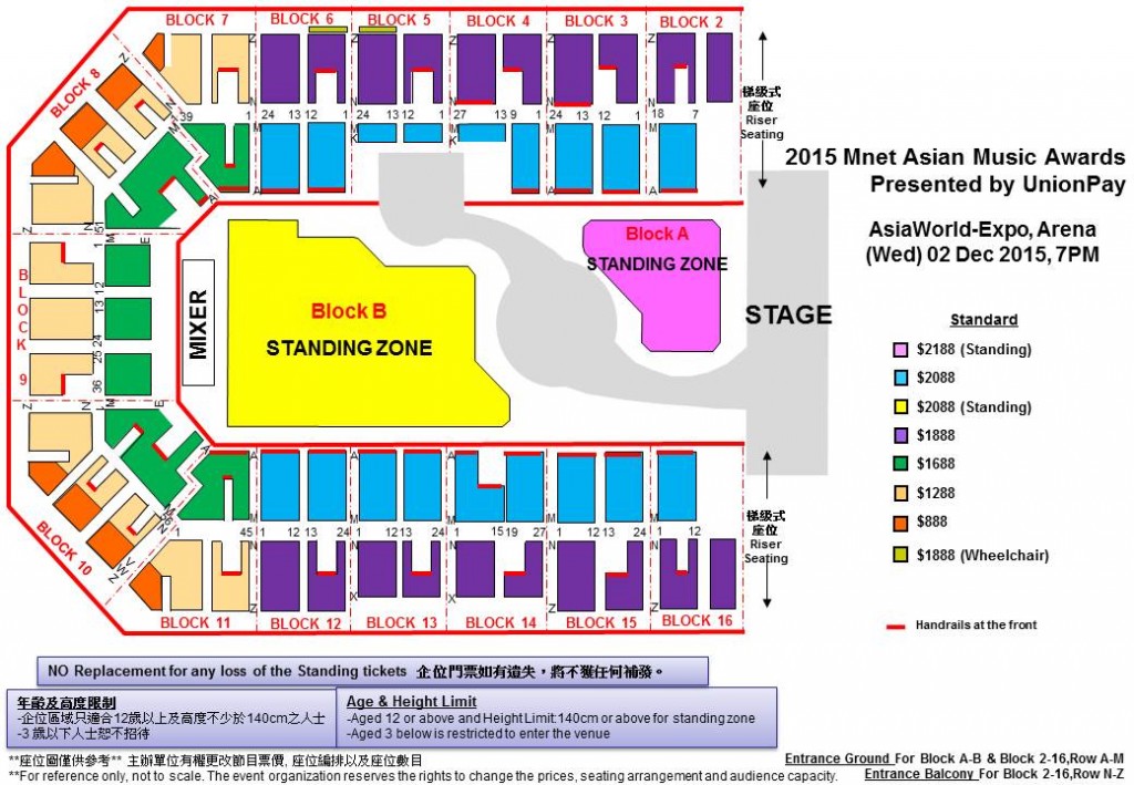 ค่าบัตร คูณค่าเงินฮ่องกง 1 HK = 5 บาท นะครับ บัตรถูกสุด $888 = 4,440 บาท แพงสุด(ยืนแทบจะติดนักร้อง) $2,188 = 10,940 บาท