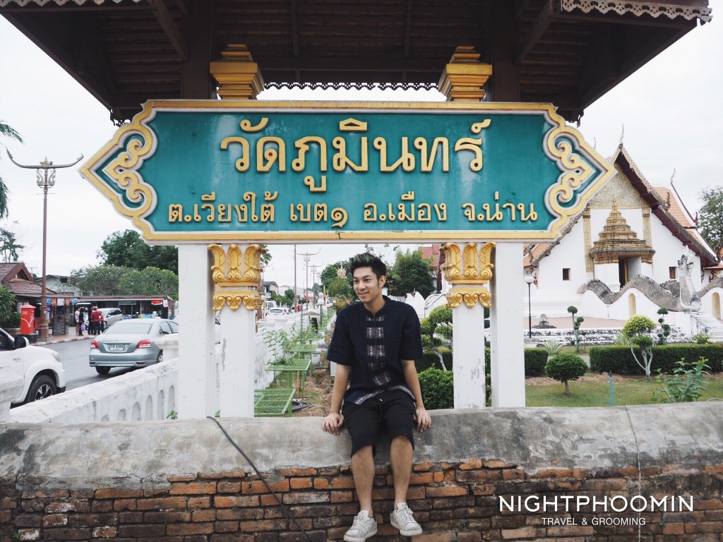 หลังจากนั้นเราเดินทางสู่ตัวเมืองน่าน เรามาถึงกันเวลาสายๆแล้ว เนื่องจากเป็นวันอาทิตย์ เมืองน่านค่อนข้างเงียบสงบเพราะหลายร้านปิดให้บริการ จะมีแต่ร้านอาหารและสถานที่ท่องเที่ยวที่เปิดเท่านั้น (ชิลล์ดีเหมือนกัน) สถานที่แรกที่เรามาเยือนคือ “วัดภูมินทร์” พูดถึงชื่อวัดนี้ แล้วรู้สึกเป็นตัวเองยังไงก็ไม่รู้ (ชื่อเหมือนวัด ฮาฮา) … วัดแห่งนี้อายุราว 420 ปี แต่ก่อนชื่อ วัดพรหมมินทร์ เรียกตามชื่อผู้สร้างคือ ‘เจ้าเจตบุตรพรหมมินทร์’ เจ้าของนครเมืองน่าน และได้เรียกเพี้ยนกันมาเป็นวัดภูมินทร์ในปัจจุบัน ความโดดเด่นของวัดนี้คือ พระอุโบสถจตุรมุข มีประตูทั้ง 4 ทิศ พระประธานปางมารวิชัย 4 องค์ ประดิษฐานตรงกลางพระอุโบสถหันหน้าออกทั้ง 4 ทิศ ถือว่าเป็นเอกลักษณ์สำคัญของวัดนี้ นอกจากนี้จิตรกรรมฝาผนังที่ถ่ายทอดเรื่องราวของวิถีชีวิตพื้นเมืองล้านนาที่วิจิตรสวยงาม สร้างรอยยิ้มให้แก่ผู้ชมได้อย่างมาก โดยเฉพาะภาพ “ปู่ม่าน ย่าม่าน” กระซิบรักบรรลือโลก ที่ใครต่อใครมาเมืองน่านต้องมาเช็คอินที่จุดนี้ครับ