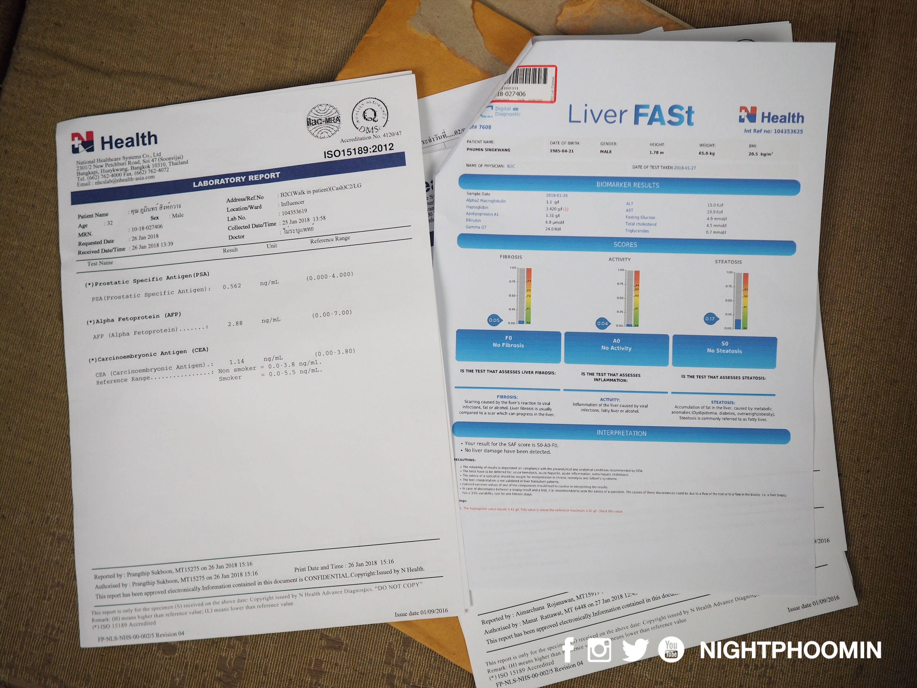 ส่วนผลการตรวจของไนท์คือ ไม่มีภาวะเสี่ยง มะเร็งต่อมลูกหมาก, มะเร็งตับ, มะเร็งลำไส้ ส่วนค่าตับ ตับแข็ง, ตับอักเสบ, ไขมันพอกตับ อยู่ในเกณฑ์ที่ต่ำมาก
