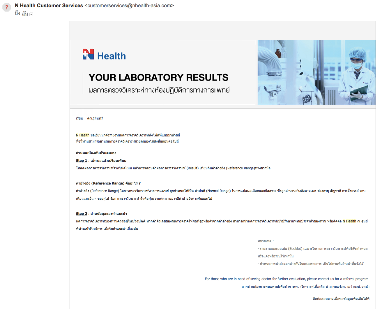 - หลังจากได้รับ E-Mail จะมีเจ้าหน้าที่โทรมาอธิบายผลตรวจ