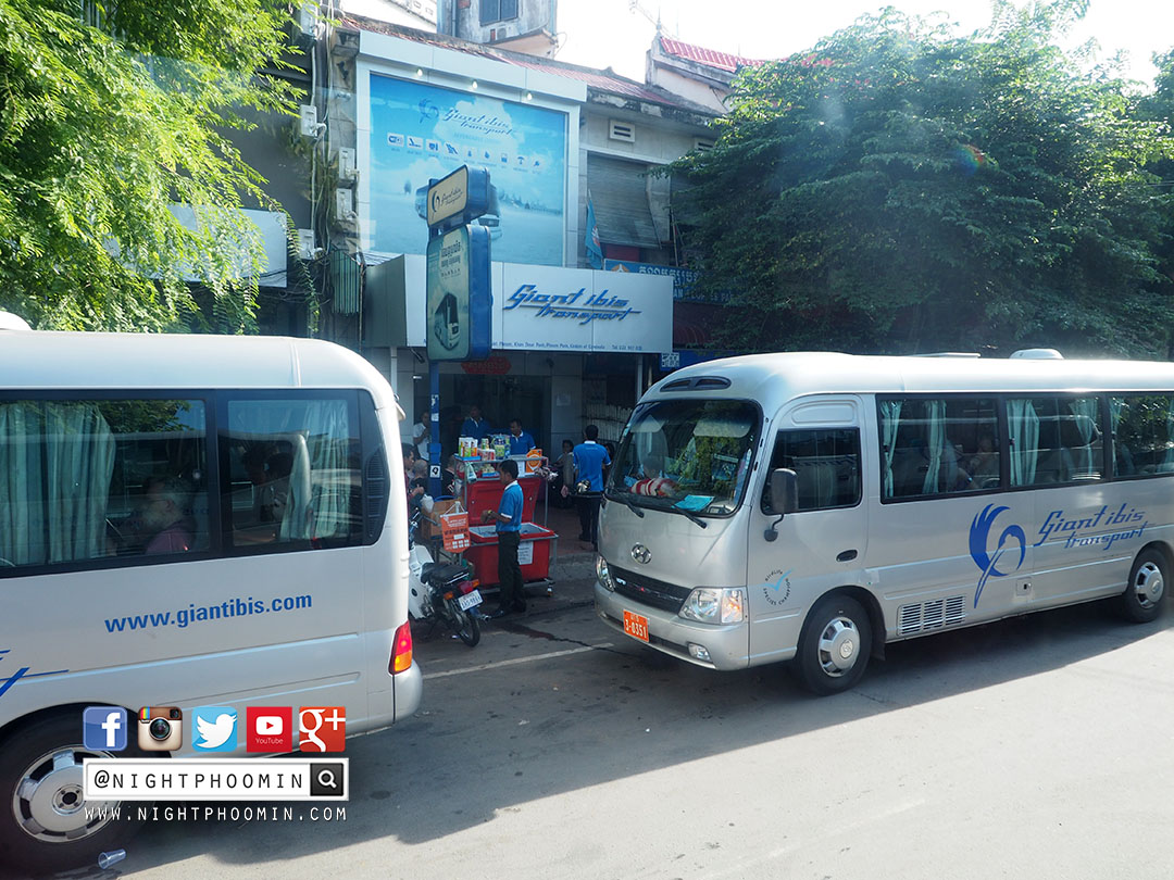 ส่วนตัวไนท์จองการเดินทางกับ Giant Ibis ครับ โดยเราสามารถระบุวัน เวลา(มี 2 เที่ยว เช้ากับบ่าย) และให้รถมารับเราที่โรงแรม (โรงแรมต้องอยู่แถวๆพระราชวัง) เพื่อไปรวมตัวขึ้นรถบัสที่บริษัทครับ … อยากจะบอกว่า เราตกรถครับ! เราแจ้งให้เข้ามารับ 7.30น. แต่ออกจากโรงแรมไม่ทัน สรุปต้องนั่งตุ๊กตุ๊ก $3 ไปที่บริษัท อยู่ตรงถนน 106 ซึ่งเดินทางแค่ 5 นาทีก็ถึงครับ
