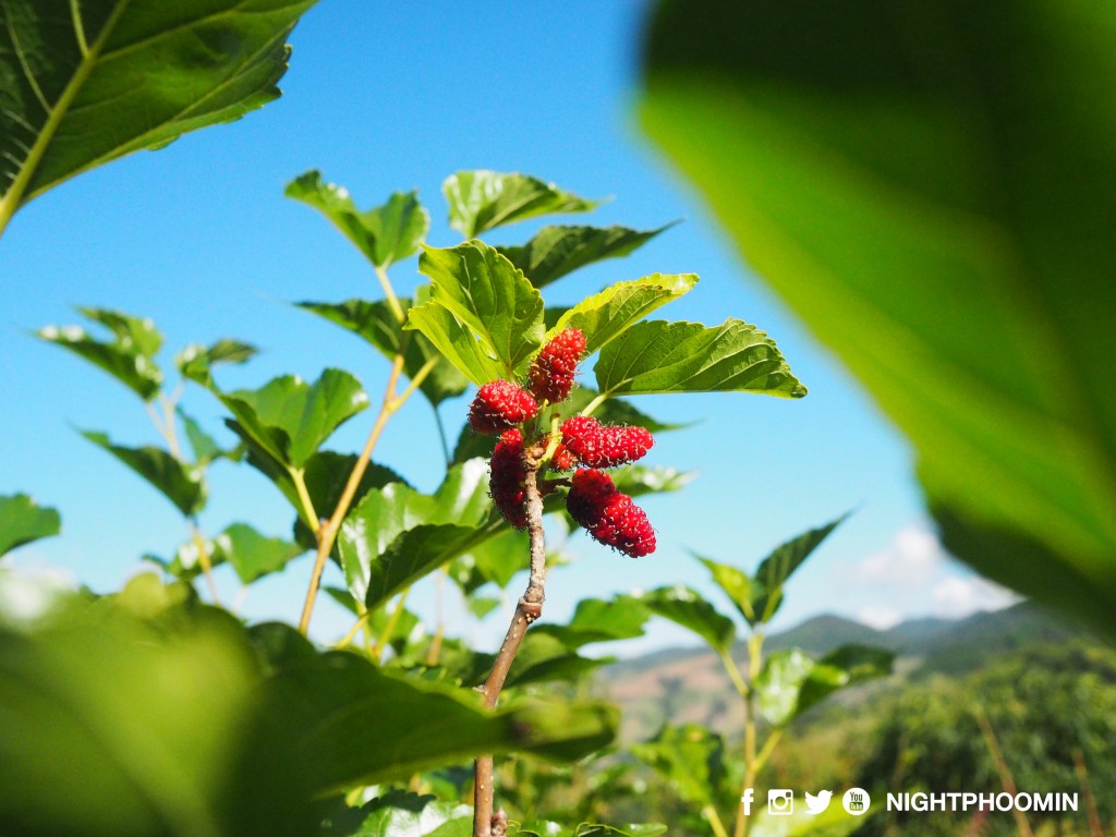 ซ้ายคือไร่สตอเบอรี่ ส่วนขวาคือสวนต้นมัลเบอรี่
