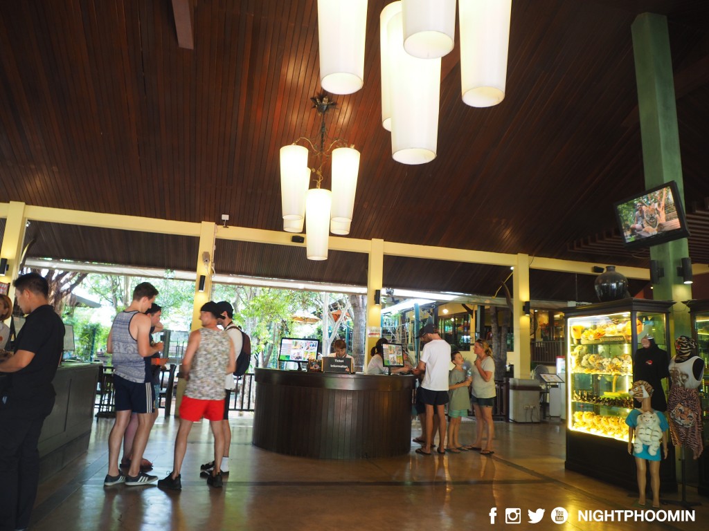 เราเดินทางมาถึงที่นี้ราวๆ บ่าย 3 โมง (ถ้ามาจากตัวเมืองเชียงใหม่ ขับมาทางอ.แม่ริม ราวๆ 20 นาที) รับบัตรคิวตั้งแต่ลานจอดรถ พอเดินเข้าไปในอาคาร เจ้าหน้าที่จะถามเราว่า มากินข้าวหรือมาเข้ากรงเสือ ซึ่งถ้าคุณมากินข้าว ดูเสือฟรีๆ ไม่ต้องเสียค่าใช้จ่ายอะไรนอกจากอาหาร ส่วนถ้าใครจะเข้ามาเล่นกับเสือ ที่นี้มีหลากหลายราคา เริ่มต้น 700 บาท (เสือขนาดใหญ่สุด) จนถึง 1,300 บาท (เสือเล็กสุด แพงกว่าเพราะเสี่ยงติดเชื้อโรคหรือป่วยมากกว่า) นอกจากนี้ยังมีบริการถ่ายรูปให้ด้วย (จ่ายแยกจากแพ็คเก็ต)